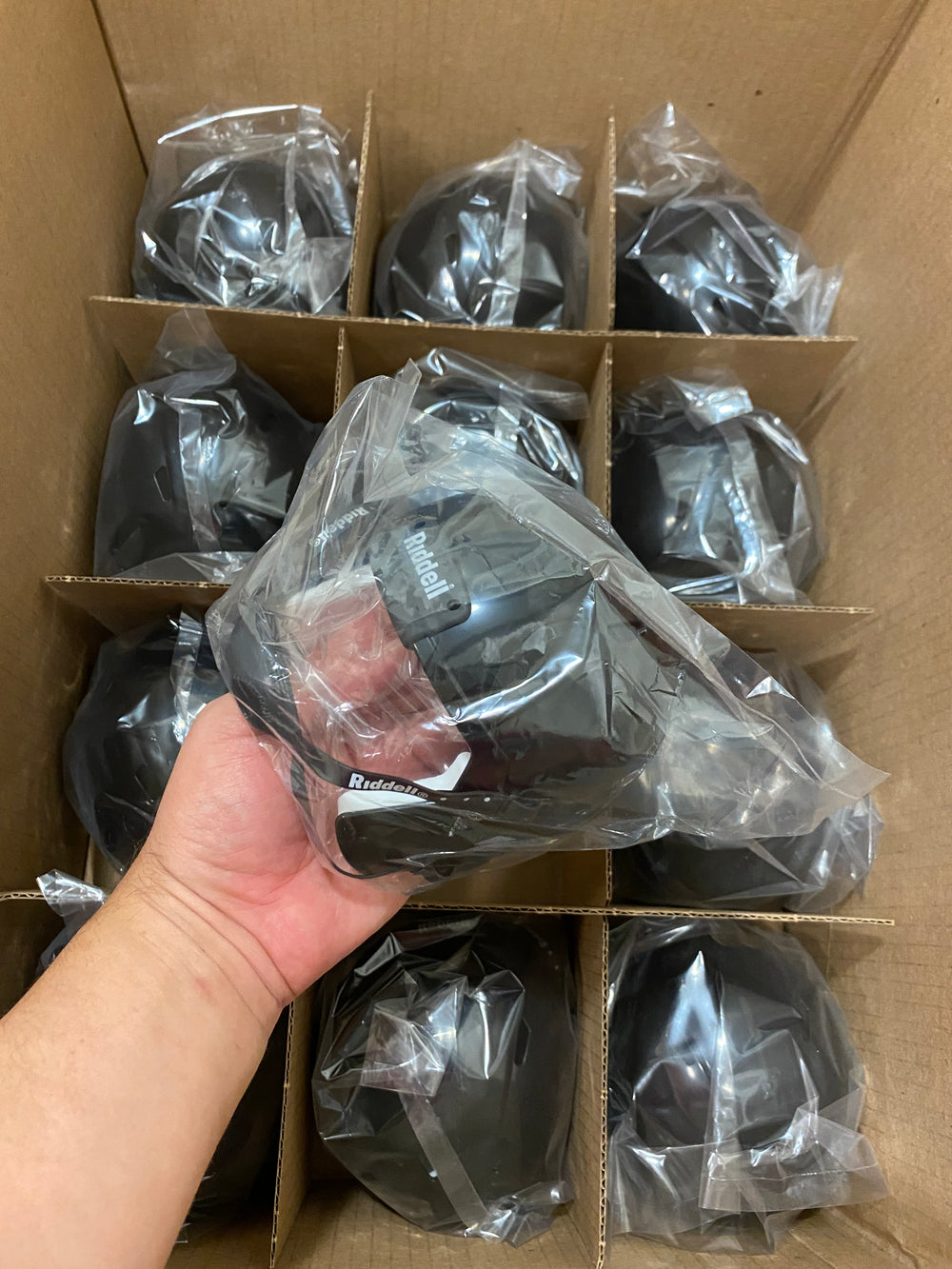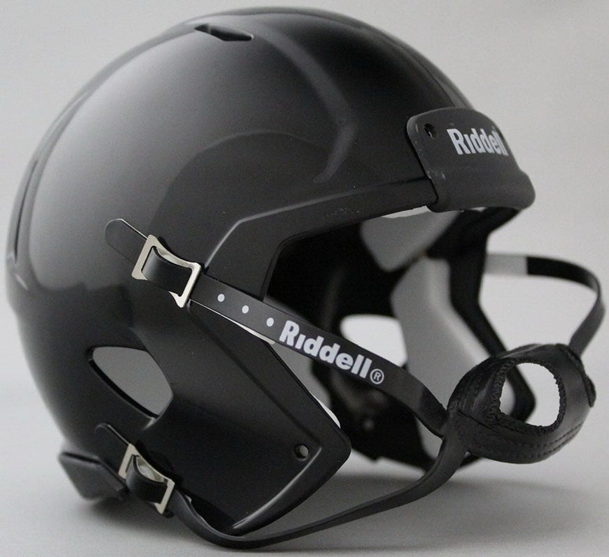 Mini Gloss Riddell Black Helmet with Black Bumpers and Black Chin strap